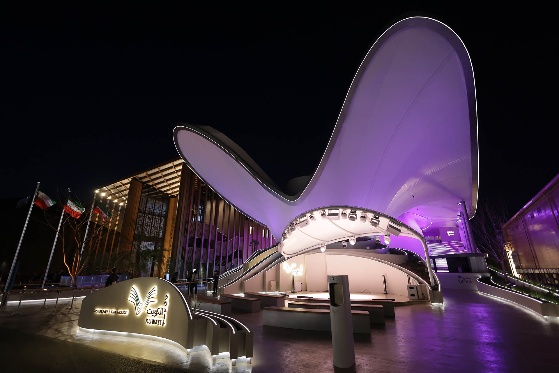The pavilion’s diverse designs skillfully blend Kuwait’s signature elements into a cohesive experience. From a Japanese-inspired entrance that nods to the host country, to desert vistas and a futuristic lounge, it showcases Kuwait’s natural beauty, cultural richness, dynamism, and global spirit.